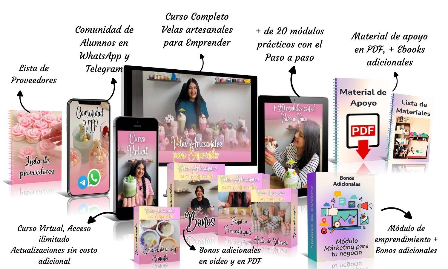 ✔ Bono #2: Curso complero de emprende y lanza tu marca de velas artesanales.